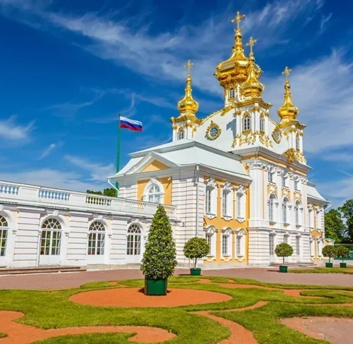 Увидим интерьеры и залы Большого Петергофского дворца. Эта экскурсия длится около часа